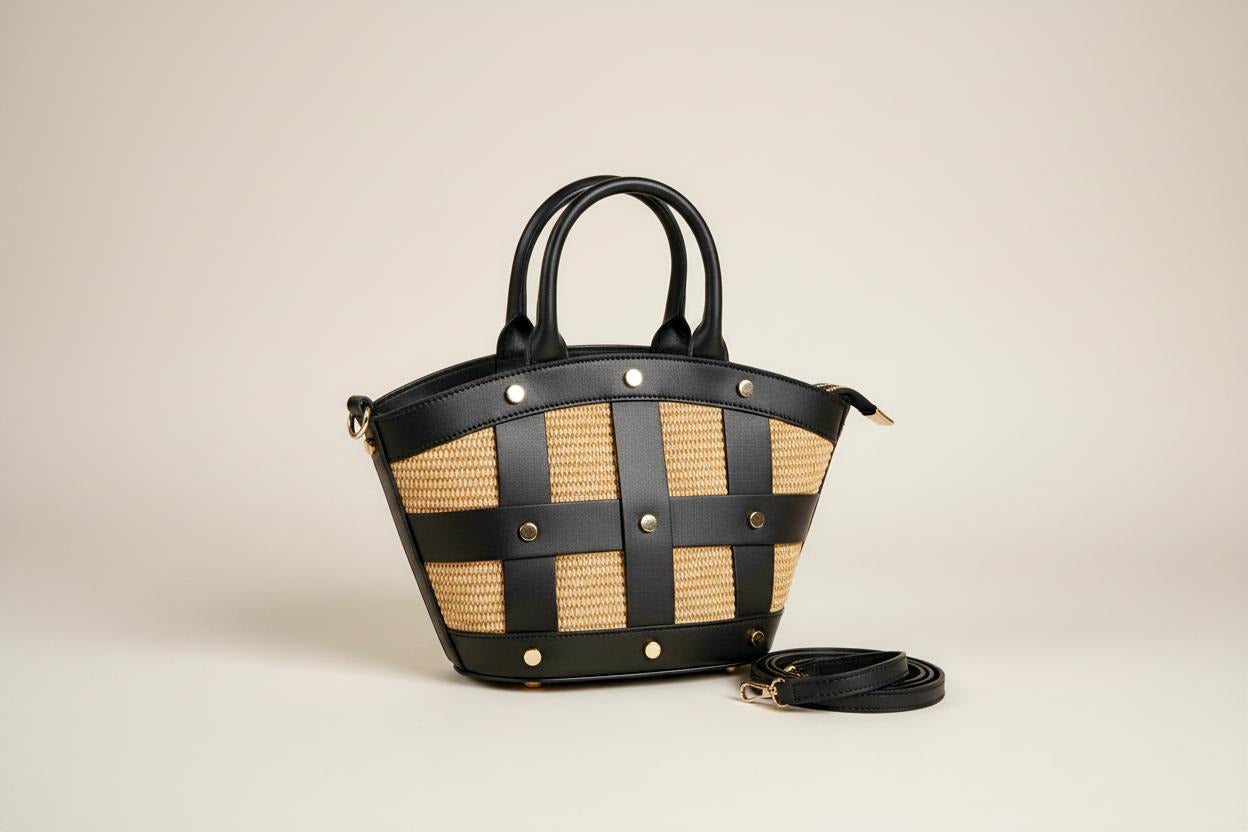 Leather Crossbody Rivet Strawbag