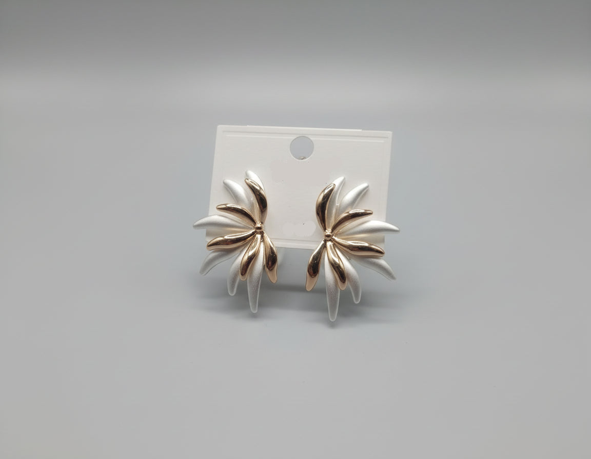 Sterling silver two-tone abstract floral stud earrings with brushed matte petals and polished gold-tone accents.