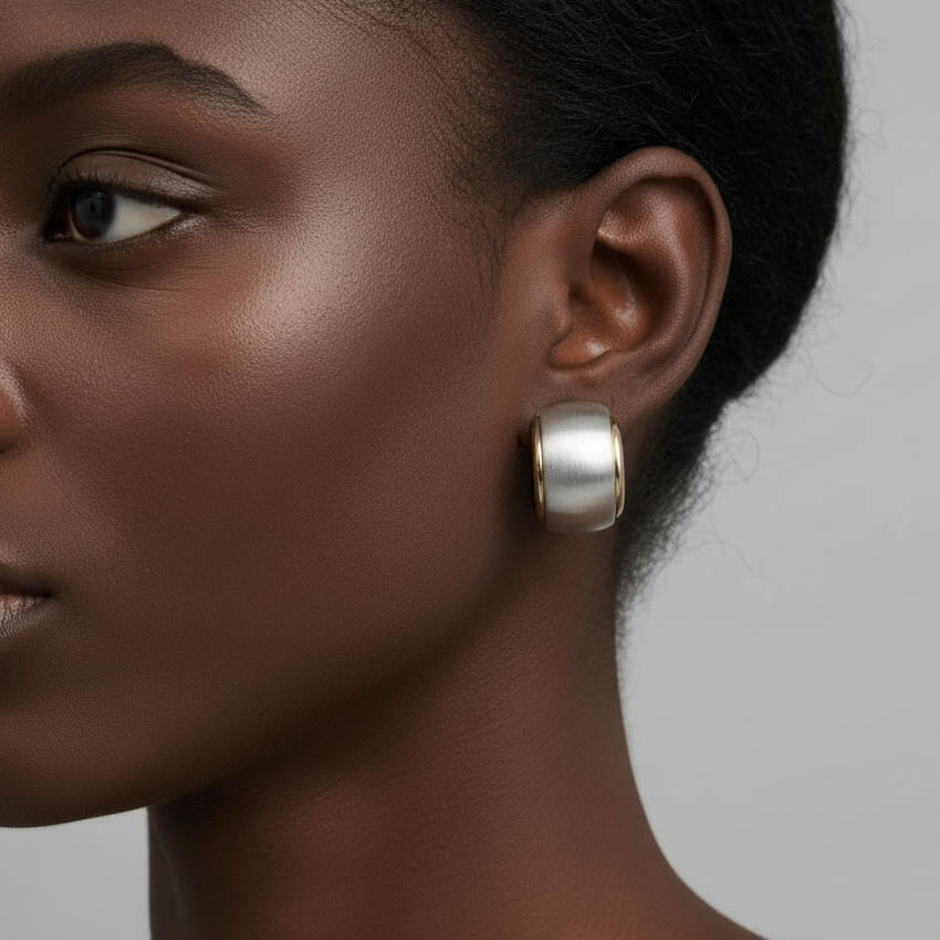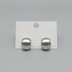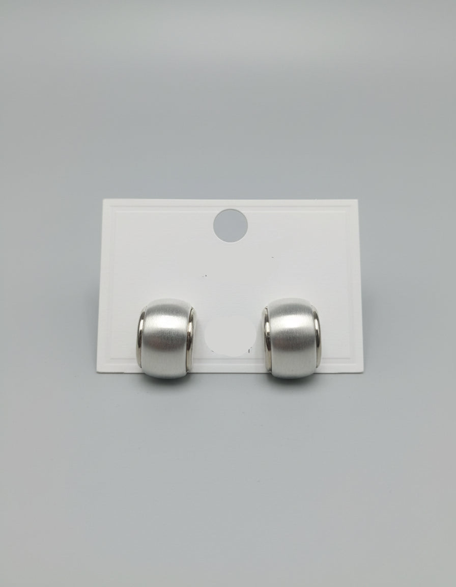 Sterling silver brushed barrel-shaped stud earrings with polished edges.