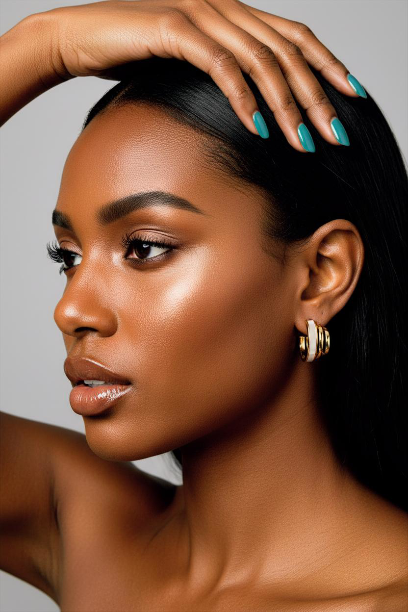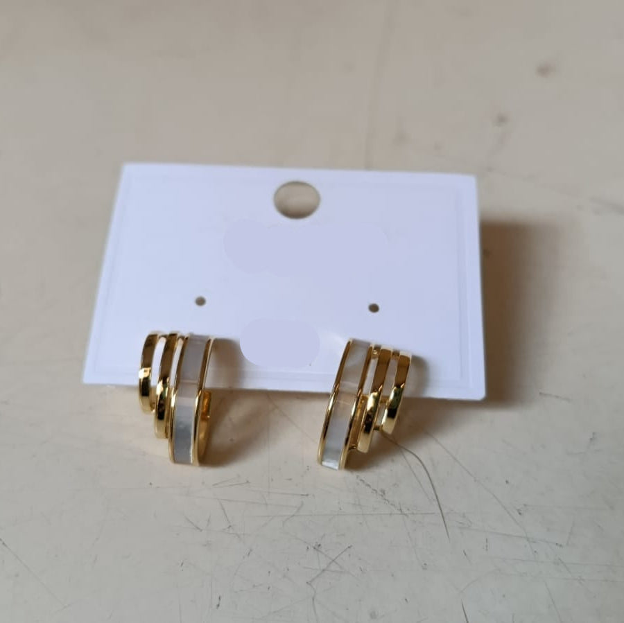 Chic gold-toned hoop earrings featuring a wide center band of iridescent white enamel flanked by polished metal ridges in a modern striped design.