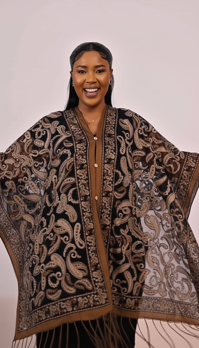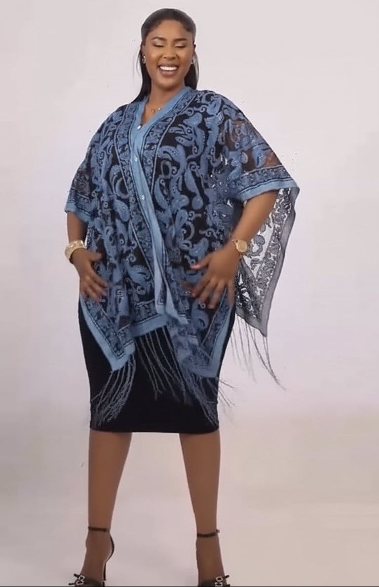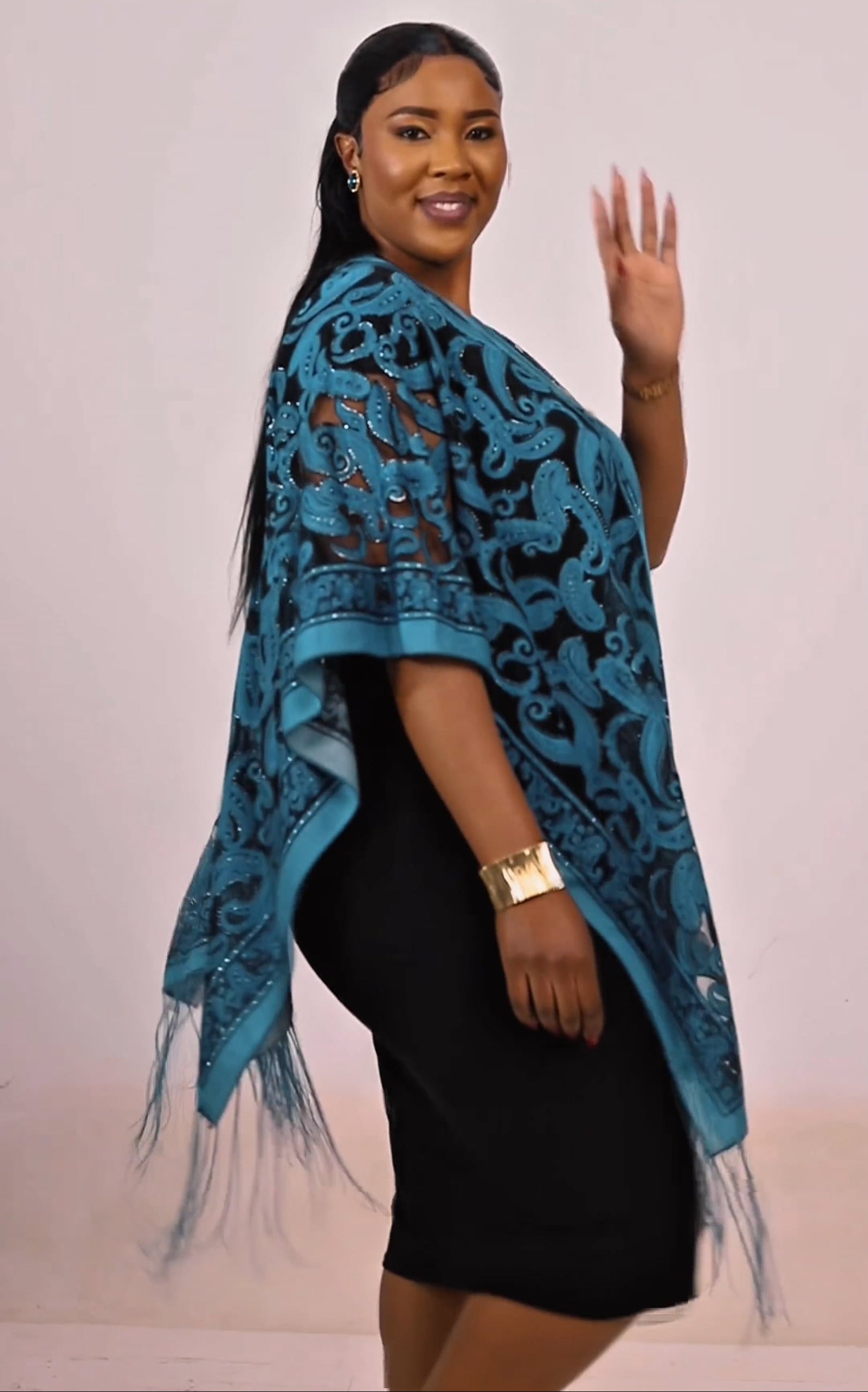The Exclusive Poncho is the perfect multi-wear accessory for any wardrobe. A lightweight, burnout velvet silky fabric makes it luxurious, while the silk fringe adds a touch of elegance. Wear it different ways, from the traditional v-neck to other unique looks  you'll be chic and fabulous no matter which style you choose.