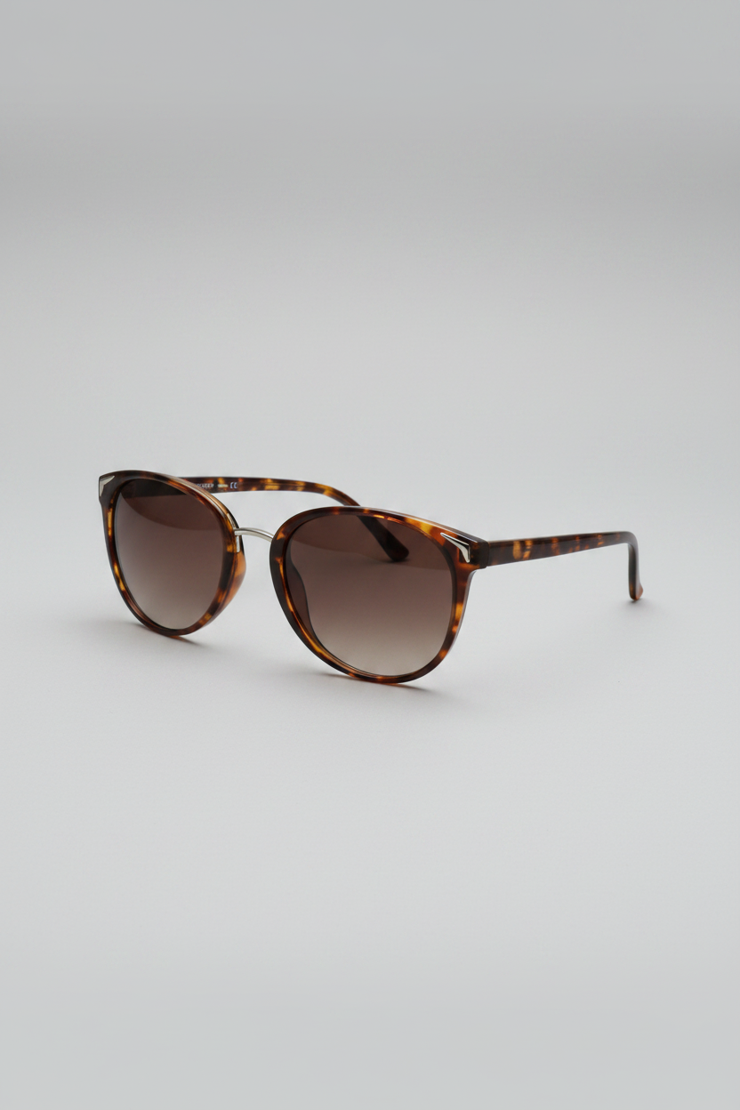 Timeless tortoiseshell round-frame barcur sunglasses featuring a rich amber acetate frame, slim silver-toned metal bridge accent, and gradient brown lenses for effortless everyday sophistication.