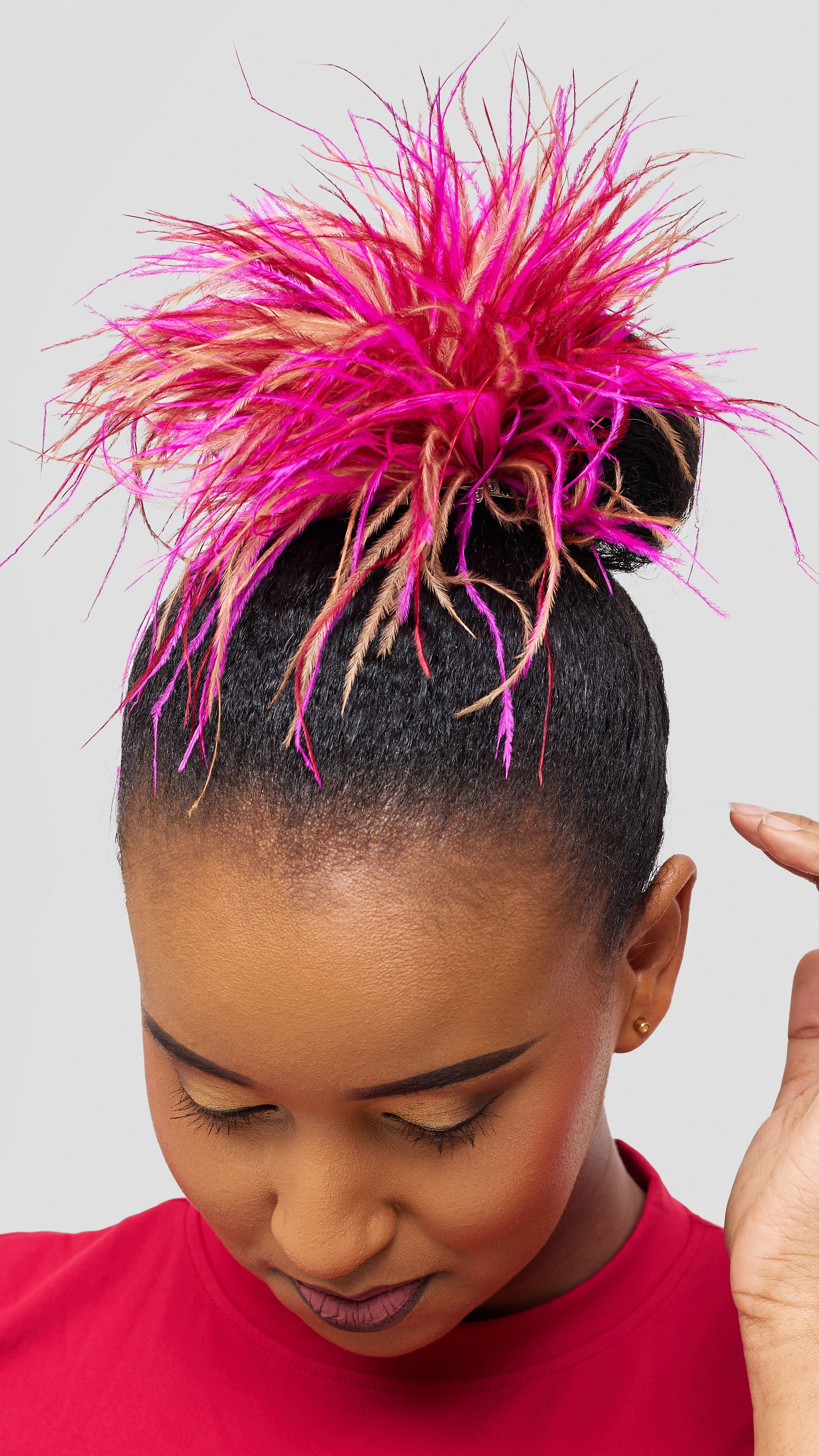 These feather brooches come in soft pastels, bold fuchsia contrasts, earthy neutrals, lively teal mixes, and stylish fuchsia-brown blends, offering both delicate and striking options for versatile styling.