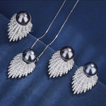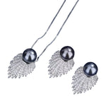 This 3-piece Pearl Set of necklace and earrings is expertly crafted with gold plated Beimu pearls on a copper bottom, complemented by stunning grey pearls in a geometric design. Perfect for parties, this trendy set features high-quality cubic zirconia stones and is a must-have for any jewelry collection. Add a touch of elegance to any occasion with this stylish and versatile set.