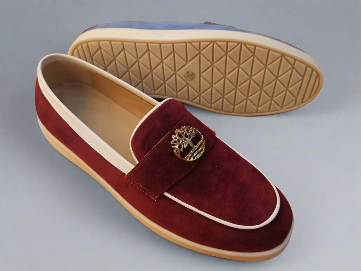 Expertly crafted with the fashion-conscious in mind, these suede casuals are designed to elevate any look. Choose from a variety of colors to match your unique style, and add a touch of luxury with the decorative gold emblem and white piping. The textured diamond pattern soles not only add a stylish touch, but also provide functional grip for all-day comfort.