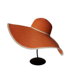 This stylish Floppy Straw hat, with a crepe weaving method and big eaves, is perfect for traveling. The adjustable size and lightweight design provide a comfortable fit while keeping you shaded from the sun. Available in beige with black or orange with beige trim. A must-have for any lady's wardrobe.