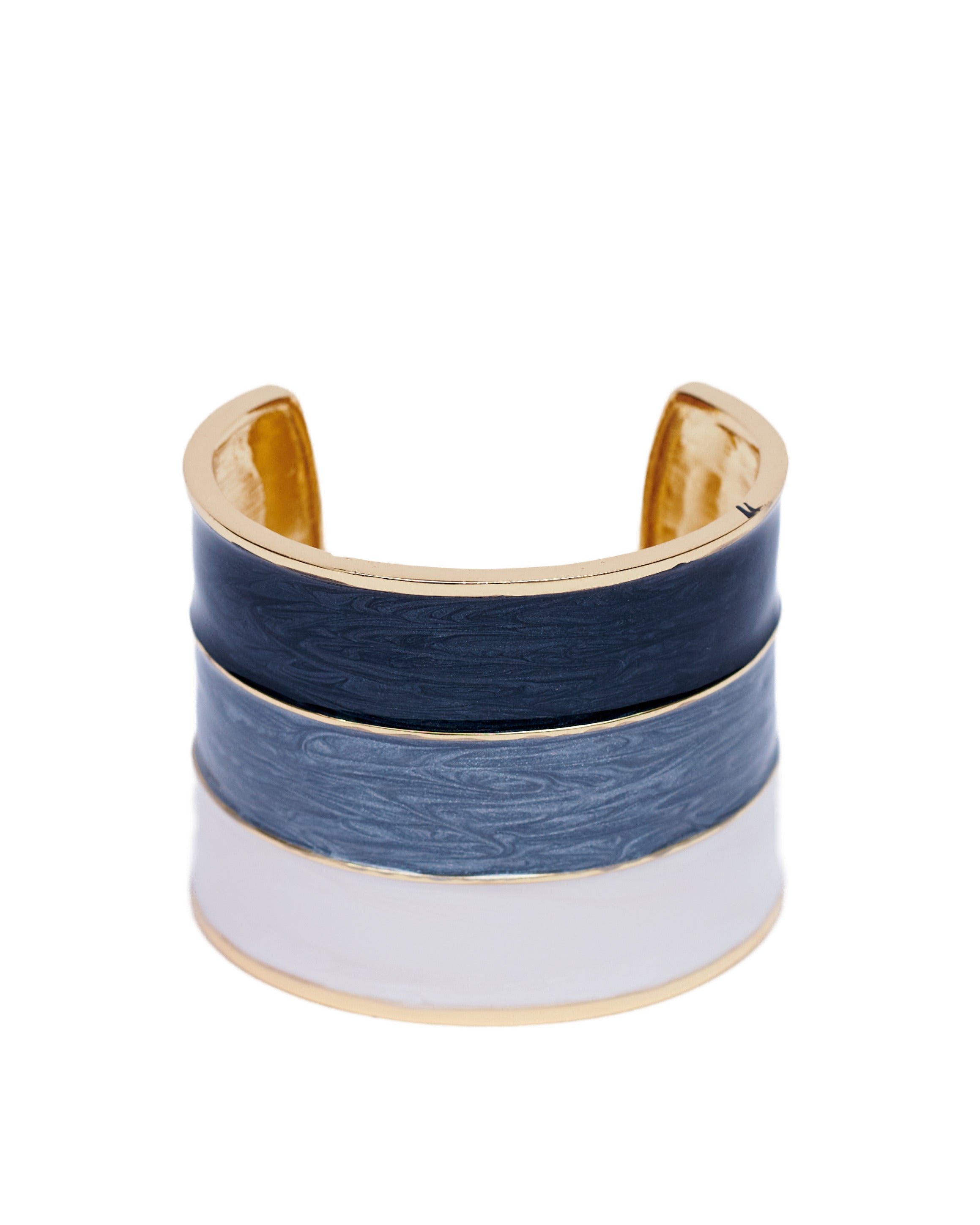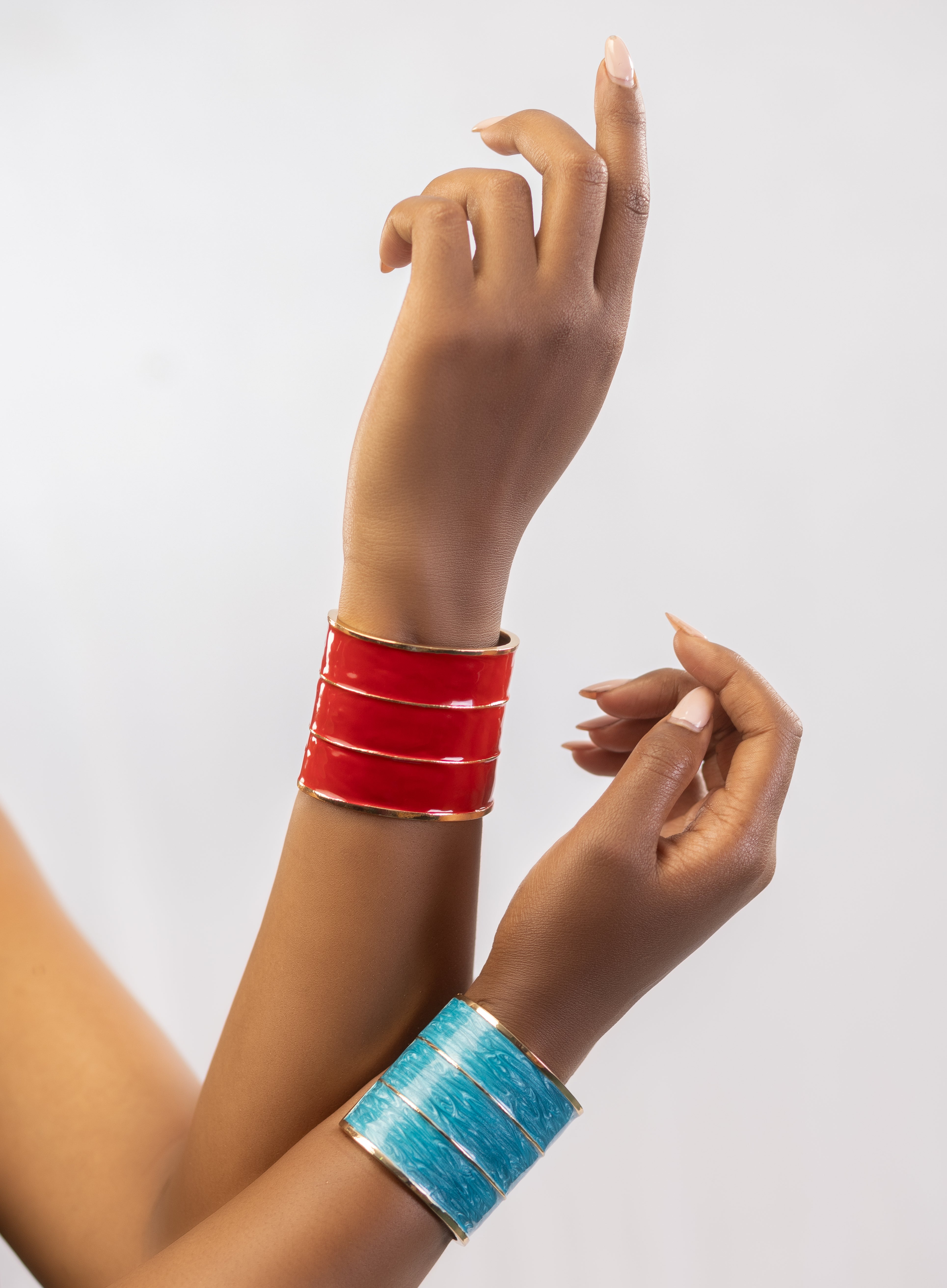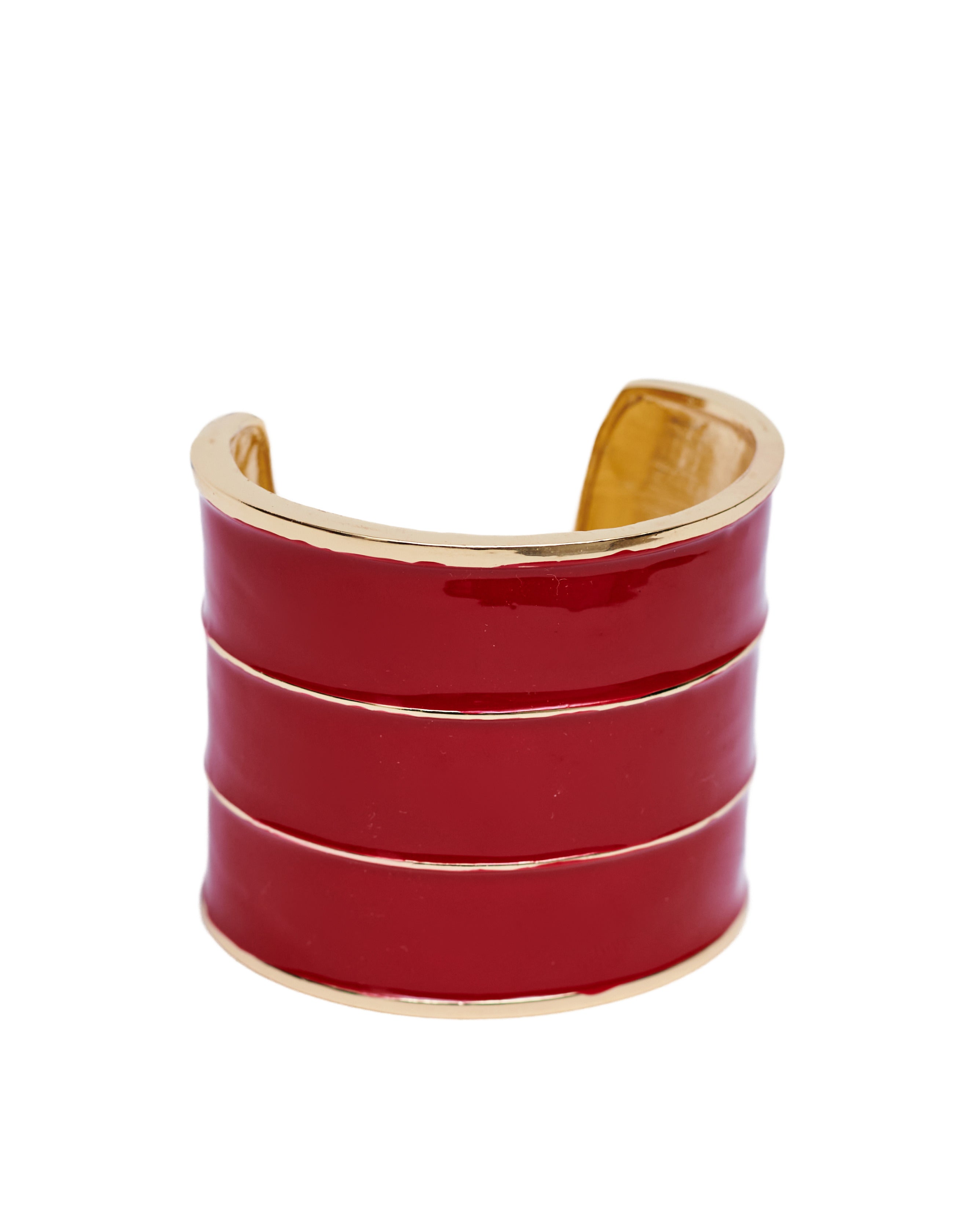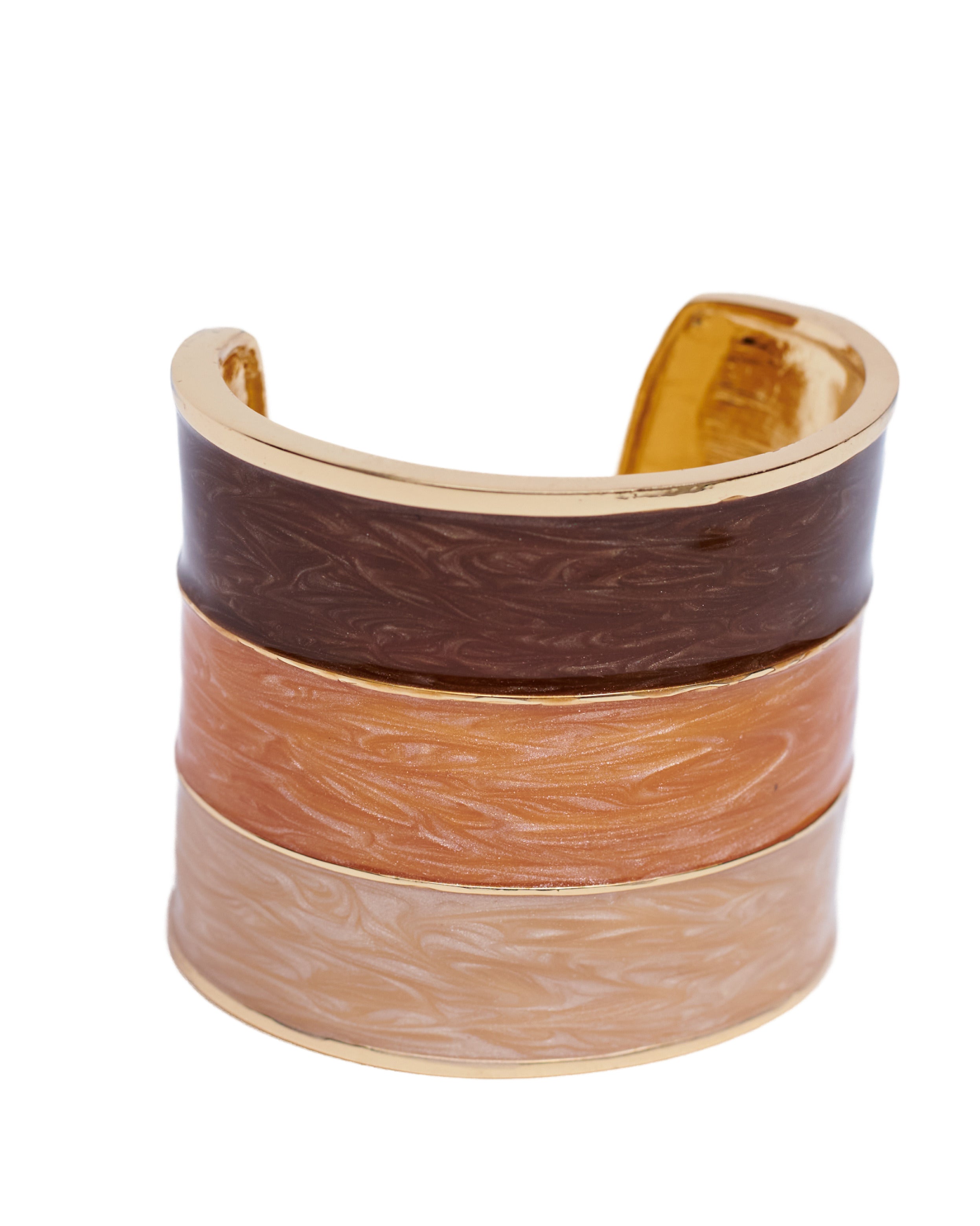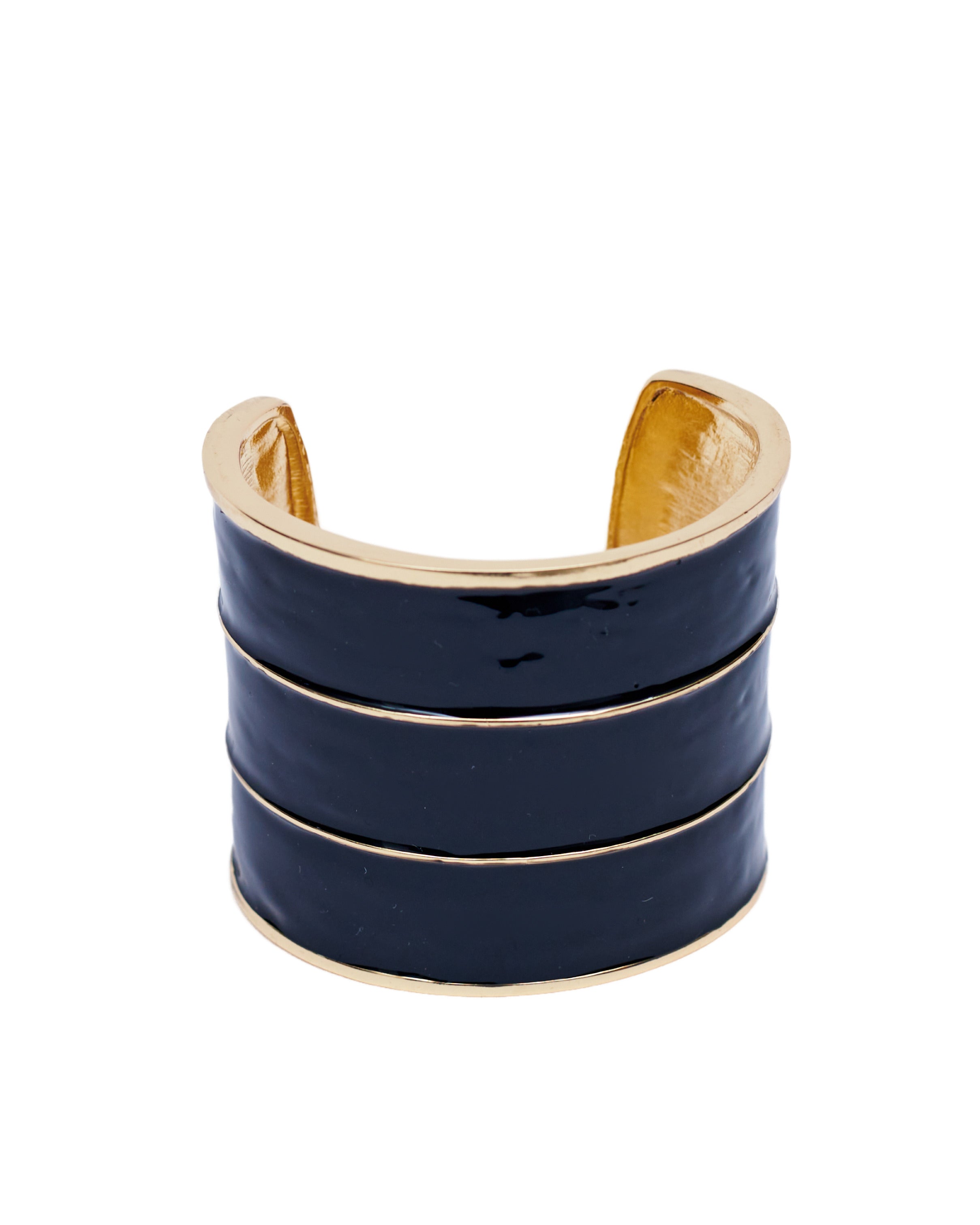 Add a touch of sophistication to any outfit with our arm band Bracelet. Featuring a bold and elegant triple-band design, these cuffs come in vibrant and neutral shades with glossy enamel finishes. The gold-tone edges provide a striking contrast, making them statement pieces for both formal and casual occasions. Upgrade your wardrobe with this modern and chic accessory.