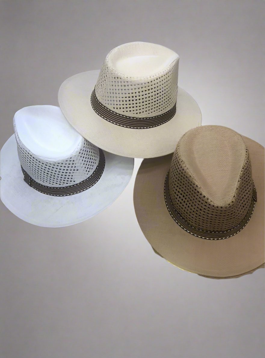 Stay cool and stylish with our Fedora Vent Hat. Made from woven straw and featuring mesh detailing, it's perfect for keeping you comfortable in the summer heat. The wide brim offers sun protection, while the variety of colors makes it a versatile addition to your wardrobe.