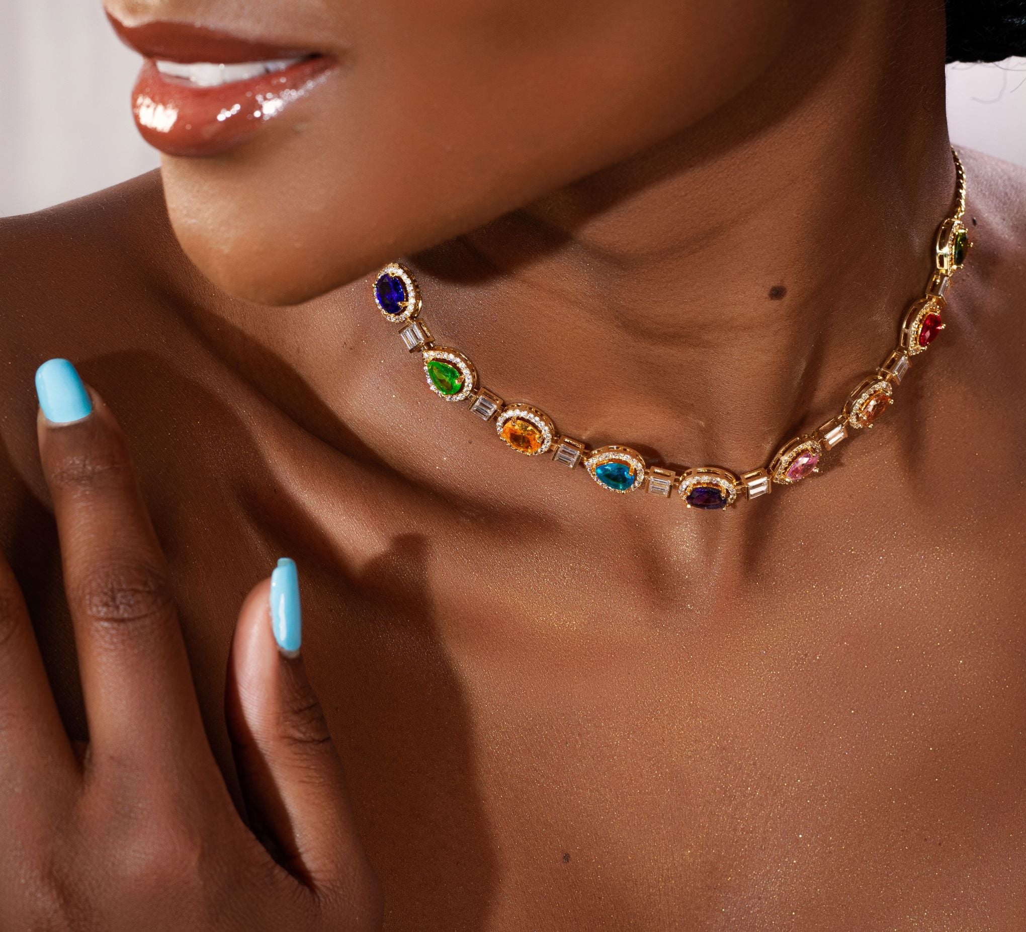 This stunning Multicolor Zircon necklace is a true work of art. Its vibrant gemstones, encased in delicate gold settings, add a touch of elegance to any outfit. Whether worn casually or for a special occasion, this versatile necklace is sure to turn heads.
