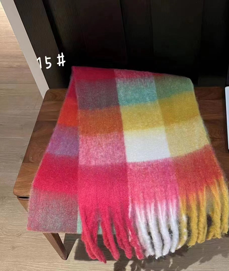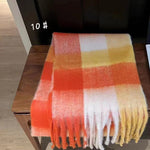 Women Plaid Scarf Cold - weather Warm Pashmina Shawls Cashmere Thick Wrap Lady Tassel Scarves Rainbow Hairy Bufanda Luxury Brand.