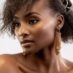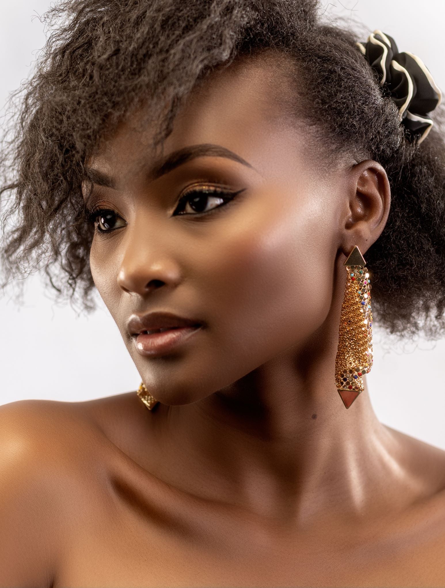 These earrings feature a mosaic-like pattern in vibrant colors, making them the perfect addition to any outfit. The rectangular shape adds a touch of elegance, while the intricate design adds a unique and eye-catching touch. These earrings are sure to add a pop of color to your look.