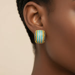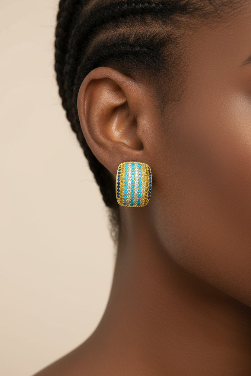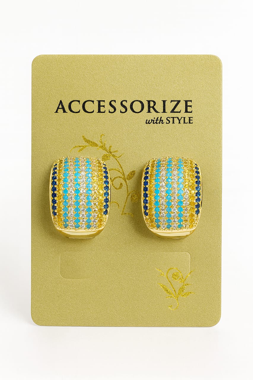 These chic stud earrings feature a gold starburst design with a central sparkling gemstone, offering a bold yet refined look.