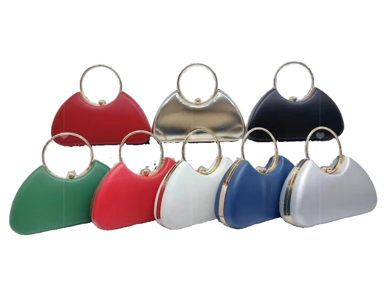 Elevate your style with these Sequined Purse Box. Featuring a metallic ring handle and available in a variety of chic colors, including red, black, blue, white, silver, this semi-circular clutch is the perfect accessory for any occasion. Add a touch of sophistication to any ensemble with this elegant piece.