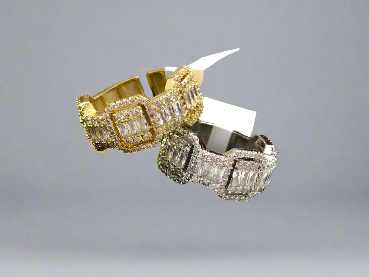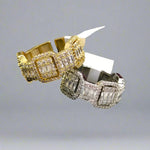 Elegant gold ring with a cluster of mixed-cut diamonds in a halo setting around a round brilliant cut center stone. Timeless and unique, perfect for everyday wear or special occasions. Durable and elegant gold enhances the diamonds' beauty. Eye-catching and perfect for those seeking a distinctive ring.